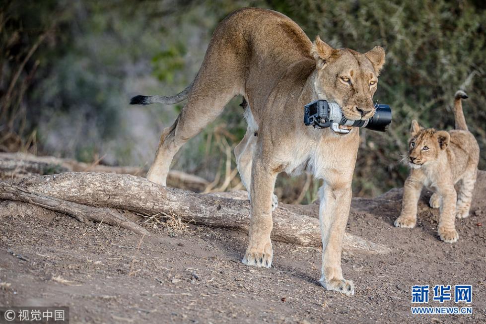 近日,非洲博茨瓦納馬沙圖野生動(dòng)物保護(hù)區(qū)內(nèi)一頭獅子叼起攝影師掉落在地上的相機(jī),之后還將相機(jī)交給小獅子們玩耍,看起來(lái)十分好奇,而攝影師非常無(wú)奈?,F(xiàn)年57歲的叢林探險(xiǎn)家Barbara Jensen Vorster在一輛越野車上為馬沙圖野生動(dòng)物保護(hù)區(qū)的獅群拍照時(shí),相機(jī)不小心掉到了地上。砰的一聲響驚動(dòng)了母獅子,它向攝影師方向移動(dòng),迫使探險(xiǎn)隊(duì)撤退。(圖片來(lái)源:視覺中國(guó))