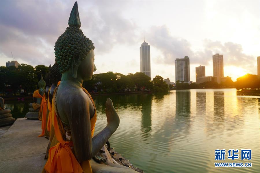 這是夕陽下的斯里蘭卡科倫坡水中廟佛像(5月27日攝)。 在科倫坡貝拉湖上有一座木造樓閣——水中廟。木造建筑上面覆蓋著藍瓦,外圍環(huán)繞著線條優(yōu)美的佛像。樓閣外高臺上供奉的佛像,與不遠處的高層建筑相互映照。祥和寧靜的水中廟已成為人們修心、祈福的重要場所。 新華社記者唐璐攝