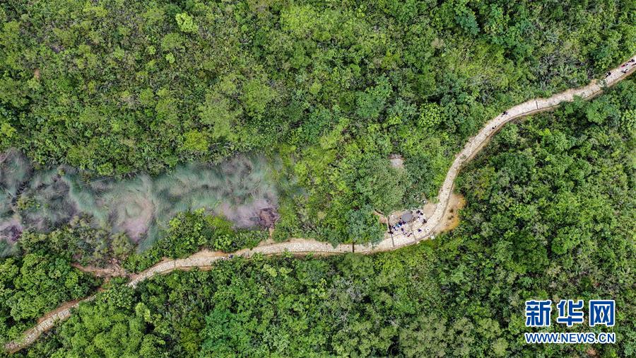 6月1日拍攝的蜿蜒于鳳凰山間的香山古驛道(無人機(jī)拍攝)。