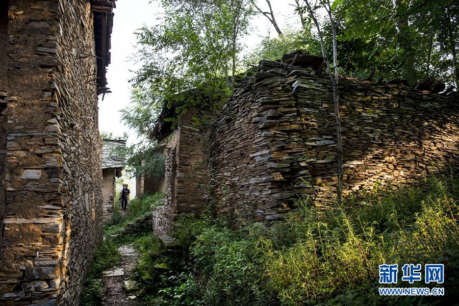 63歲的劉長鎖老人生于斯長于斯,整個村落僅他一人(8月7日攝)。他的孩子2014年搬進(jìn)山下的新居。 新華社記者陶明攝