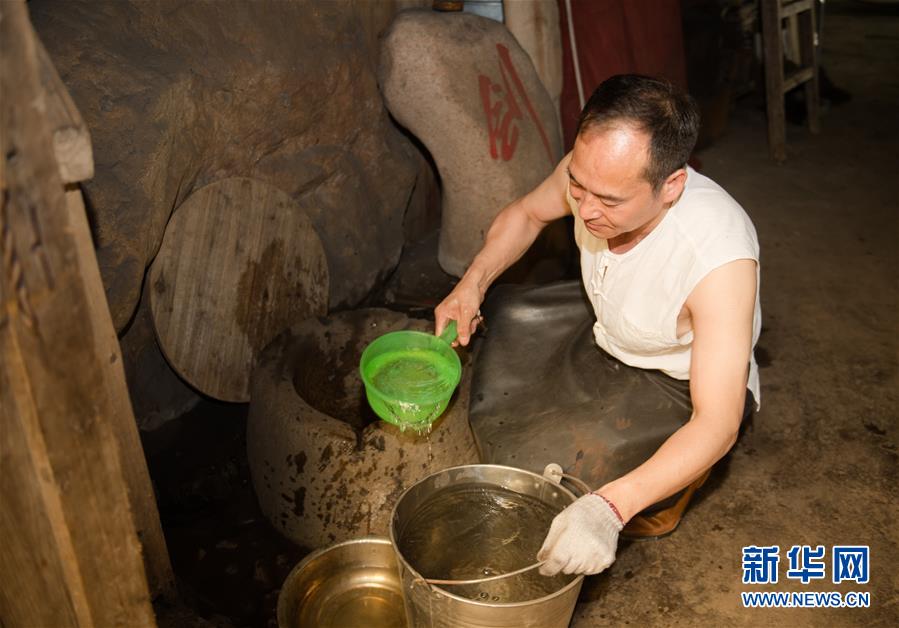 5月21日,鄭國(guó)榮在“古越劍鋪”打井水準(zhǔn)備為寶劍淬火。他說(shuō)淬火用的水很重要,正是看中了這口井他才把工作室設(shè)在這里。 新華社記者 翁忻旸 攝
