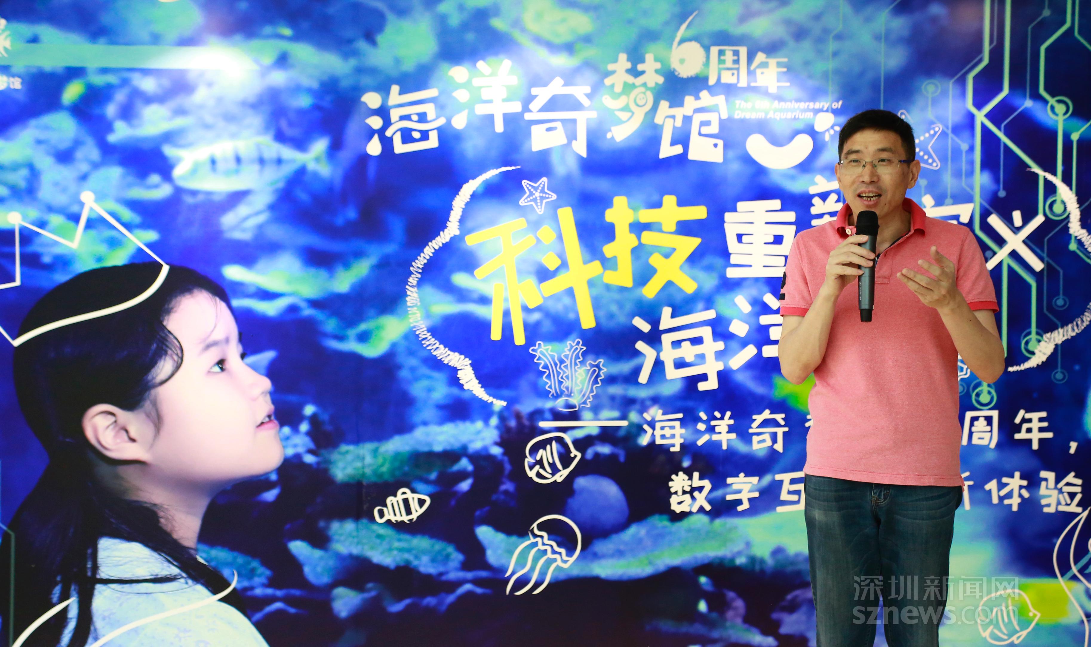 洪濤向記者介紹:“從2013年向公眾開放,海洋奇夢館就以令人驚嘆的‘科技范兒’占據(jù)深圳親子旅游行業(yè)的市場,隨著時代的發(fā)展,高科技手段將越來越真實的呈現(xiàn)出海洋的真實面貌。”洪濤走向正在“游弋”的一只“海龜”,向記者介紹,“海洋奇夢館要做的,不是為游客提供一個嬉笑玩樂的場所,我們希望讓公眾了解,真實的海洋世界與人類社會是需要互相尊重的。”