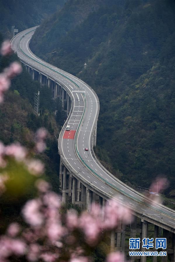 貴州思劍高速公路劍河縣岑松鎮(zhèn)段的春季景觀(guān)(3月23日攝)。陽(yáng)春時(shí)節(jié),貴州思(南)劍(河)高速公路劍河縣岑松鎮(zhèn)附近的桃花和梨花陸續(xù)開(kāi)放。 新華社記者楊文斌攝