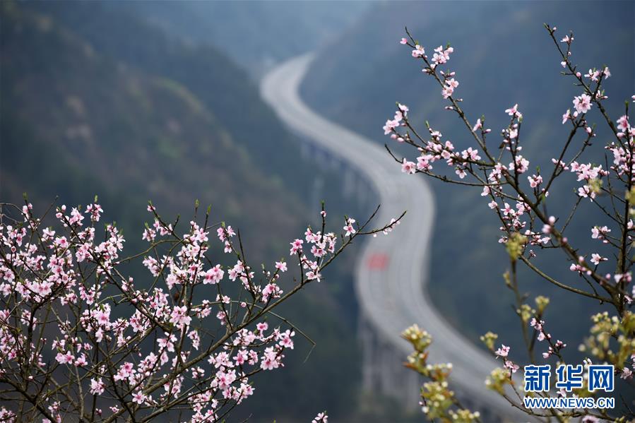 貴州思劍高速公路劍河縣岑松鎮(zhèn)段的春季景觀(guān)(3月23日攝)。陽(yáng)春時(shí)節(jié),貴州思(南)劍(河)高速公路劍河縣岑松鎮(zhèn)附近的桃花和梨花陸續(xù)開(kāi)放。 新華社記者楊文斌攝