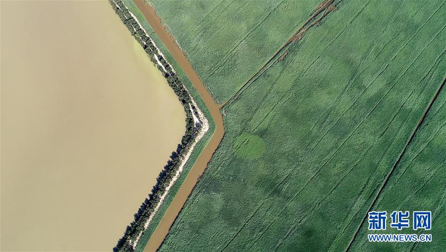 這是天津市寧河區(qū)七里海濕地內(nèi)蘆葦和水面形成的圖案(6月22日無人機(jī)拍攝)。新華社記者 岳月偉 攝