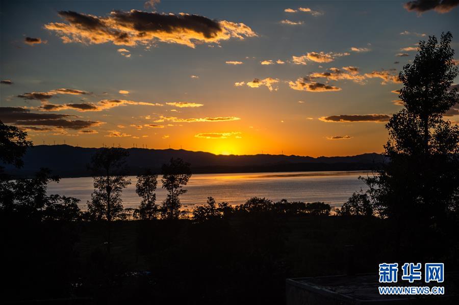 草海國家級(jí)自然保護(hù)區(qū)落日景色(6月20日攝)。