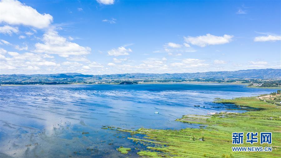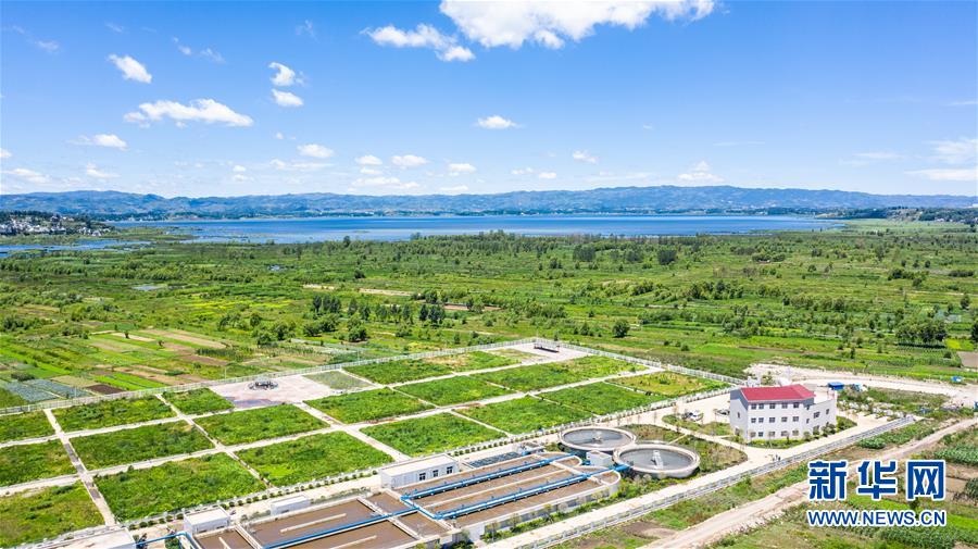 6月20日無(wú)人機(jī)拍攝的草海國(guó)家級(jí)自然保護(hù)區(qū)萬(wàn)噸生活污水處理廠。 新華社記者 陶亮 攝