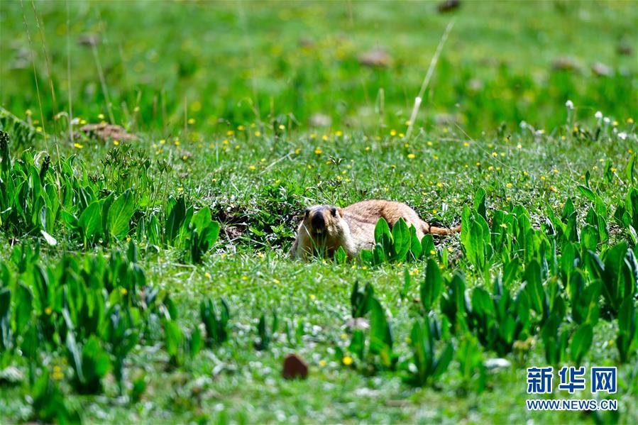 這是在青海省玉樹(shù)藏族自治州雜多縣昂賽鄉(xiāng)境內(nèi)拍攝的旱獺(6月21日攝)。 新華社記者 張龍 攝
