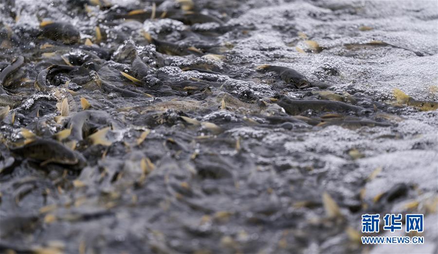 7月6日,在青海省剛察縣沙柳河里,湟魚在向上洄游。 新華社記者 費茂華攝