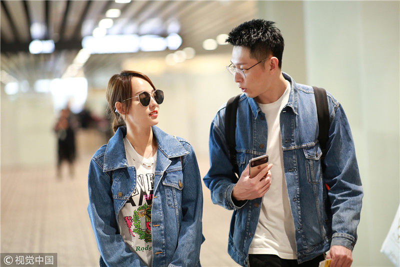 2019年4月1日,張嘉倪與老公買超現(xiàn)身機場,從廣州飛往北京。兩人同穿情侶牛仔裝,一路對視熱聊感情超甜,張嘉倪對鏡頭熱情揮手舉公仔,親和力MAX。匿名/視覺中國編輯/陳進