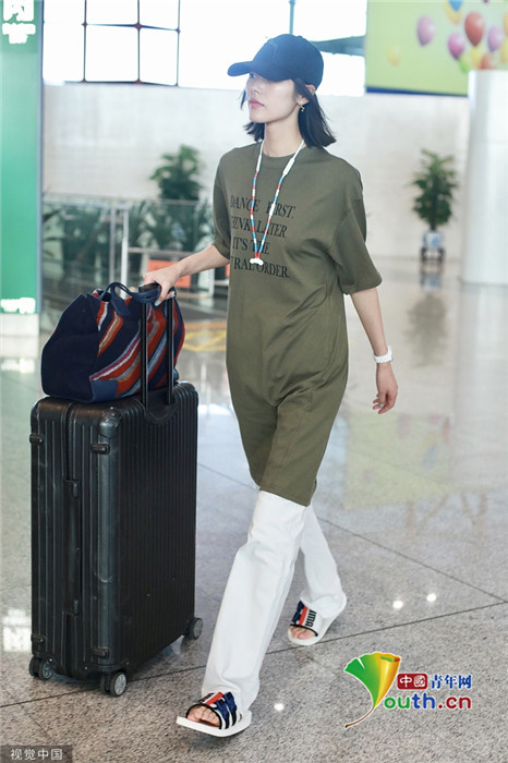 2019年7月23日,北京,劉雯現(xiàn)身機場。她頭戴棒球帽,身穿oversize上衣腳踩拖鞋,走慵懶隨性風,盡顯超模氣場,露出招牌笑容親切又有感染力。