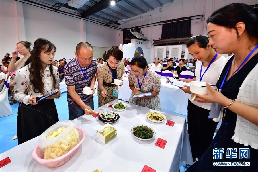 8月3日,在鄉(xiāng)村美食文化大賽現(xiàn)場,評委在對菜品進(jìn)行評定。新華社記者馮大鵬攝