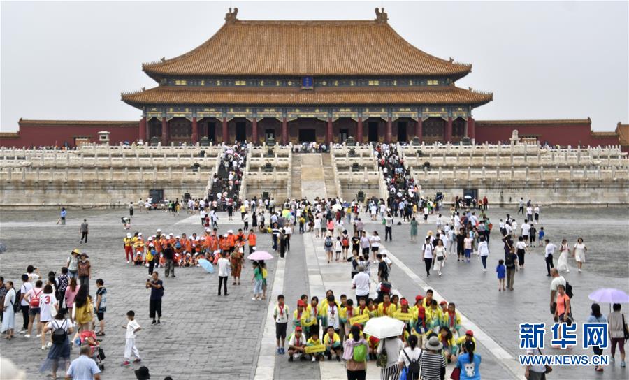8月3日,游客在故宮參觀。進(jìn)入暑期以來,北京故宮博物院迎來游覽高峰。故宮博物院采取每日游客限流、熱點(diǎn)景區(qū)導(dǎo)流、供水和醫(yī)療保障等措施,確保游客安全。新華社記者李欣攝