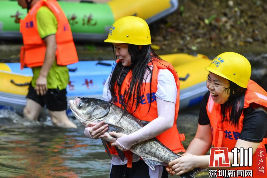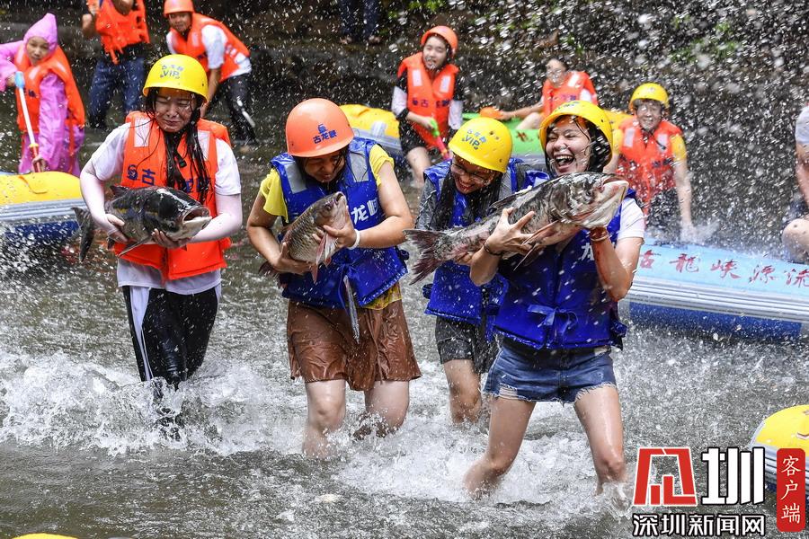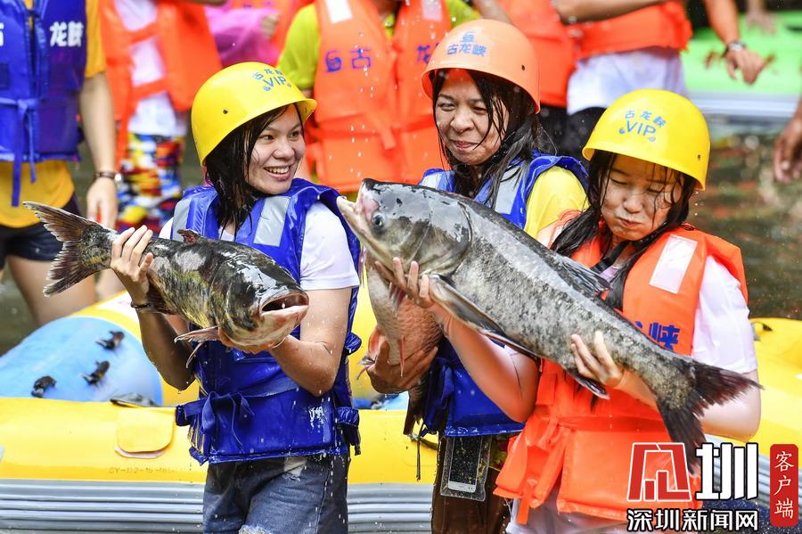 “韋帕”剛登陸廣東,清遠(yuǎn)古龍峽漂流景區(qū)就開始泄洪,上萬(wàn)斤水庫(kù)大魚隨著泄洪道“越獄”,引來(lái)上千名游客下艇捕魚,漂流河道上演了幾個(gè)小時(shí)的“人魚”大戰(zhàn),有的捕魚高手竟然捉了一漂流艇的魚回家。