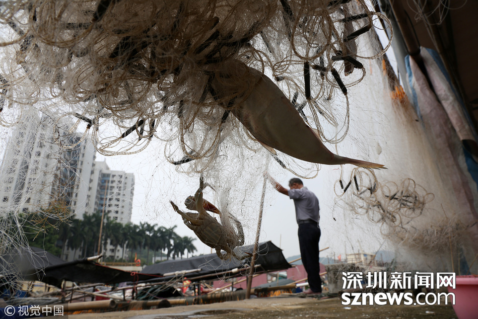 2018年8月20日,廣東東莞,虎門新灣漁港的漁民們正在分揀漁獲。