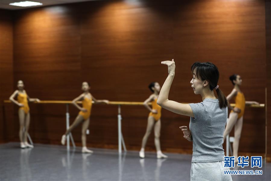 4月12日,遼寧芭蕾舞團附屬芭蕾舞蹈學(xué)校的老師張夢妮在為一年級的學(xué)生上芭蕾基訓(xùn)課。新華社記者 潘昱龍 攝