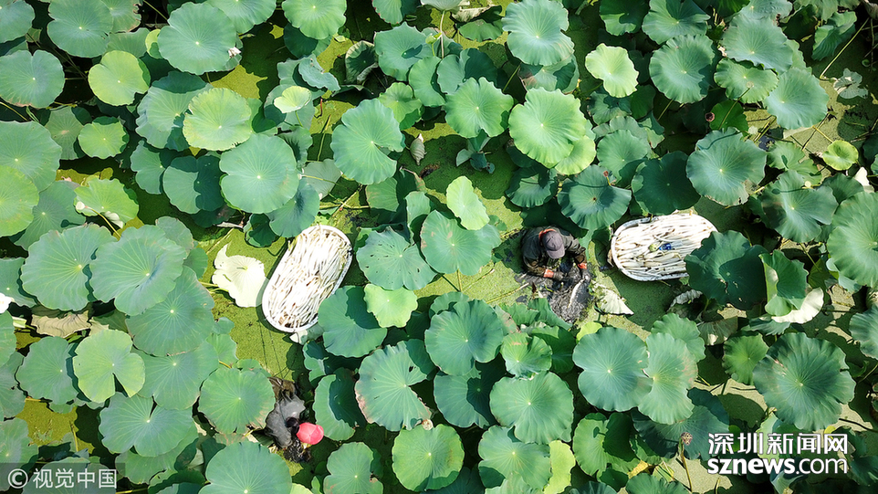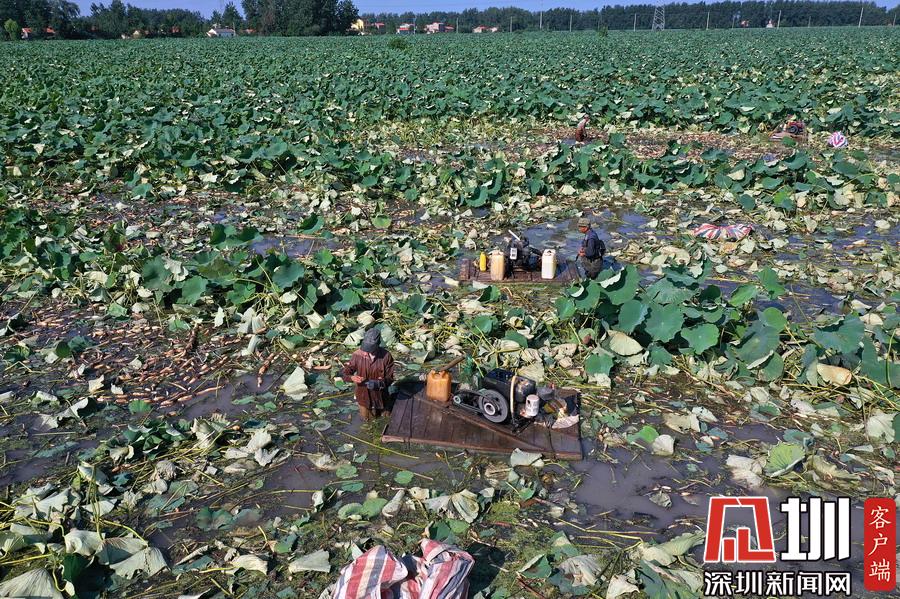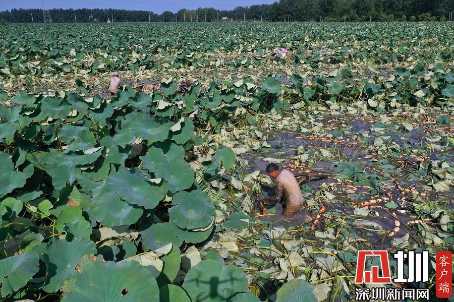 藕農(nóng)泥中“掘金”初秋時(shí)節(jié)采藕忙