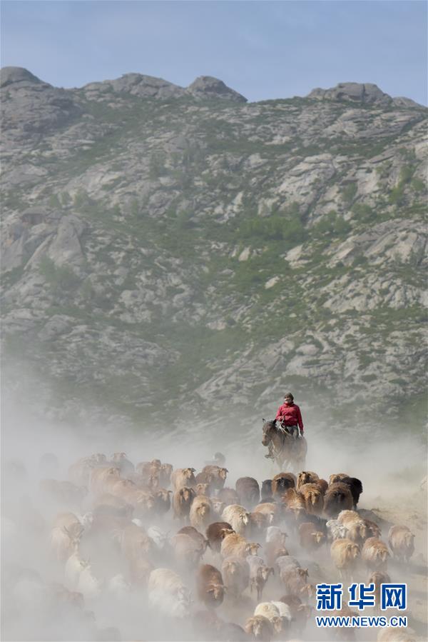 6月6日,新疆阿勒泰地區(qū)福海縣牧民趕著牲畜向夏季牧場遷徙新華社記者 丁磊 攝