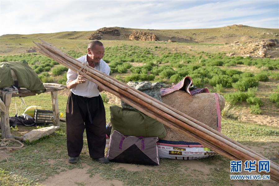 在新疆阿勒泰地區(qū)福??h牧區(qū),牧民在制作氈房飾品(6月5日攝)。眼下,隨著新疆多地夏季牧場開放,阿勒泰地區(qū)的哈薩克族牧民又迎來了轉(zhuǎn)場季,他們趕牛羊,逐水草,游走在阿爾泰山間的牧道上,形成一道流動的風(fēng)景。轉(zhuǎn)場時,牧民們攜子女及親屬騎馬趕著牲畜徐徐前行,駝隊或馬隊馱著全部家當(dāng),走到哪里,晚上就宿營在哪里。與傳統(tǒng)轉(zhuǎn)場方式不同,隨著生活條件的改善,一些牧民會雇汽車將家中的大件物品提前運送到目的地,轉(zhuǎn)場途中只需準(zhǔn)備食物和簡易氈房便可以輕裝前行……新華社記者丁磊攝
