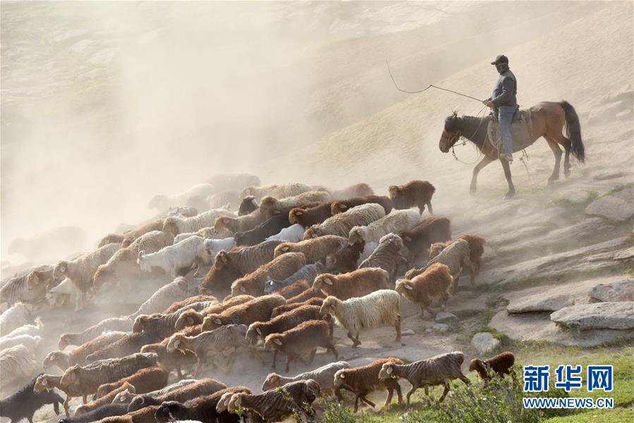 6月6日,新疆阿勒泰地區(qū)福??h牧民趕著牲畜向夏季牧場遷徙新華社記者 丁磊 攝