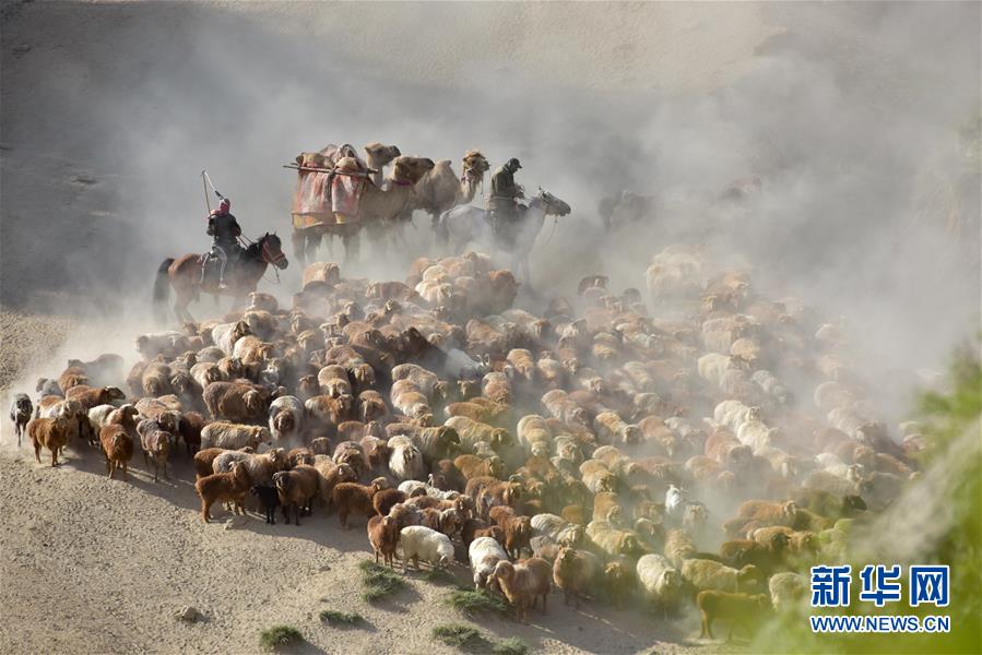 6月6日,新疆阿勒泰地區(qū)福海縣牧民趕著牲畜向夏季牧場(chǎng)遷徙。 新華社記者 丁磊 攝