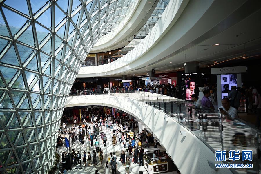 顧客在三亞海棠灣免稅店內(nèi)游覽、購(gòu)物(2018年2月18日攝)。新華社記者郭程攝