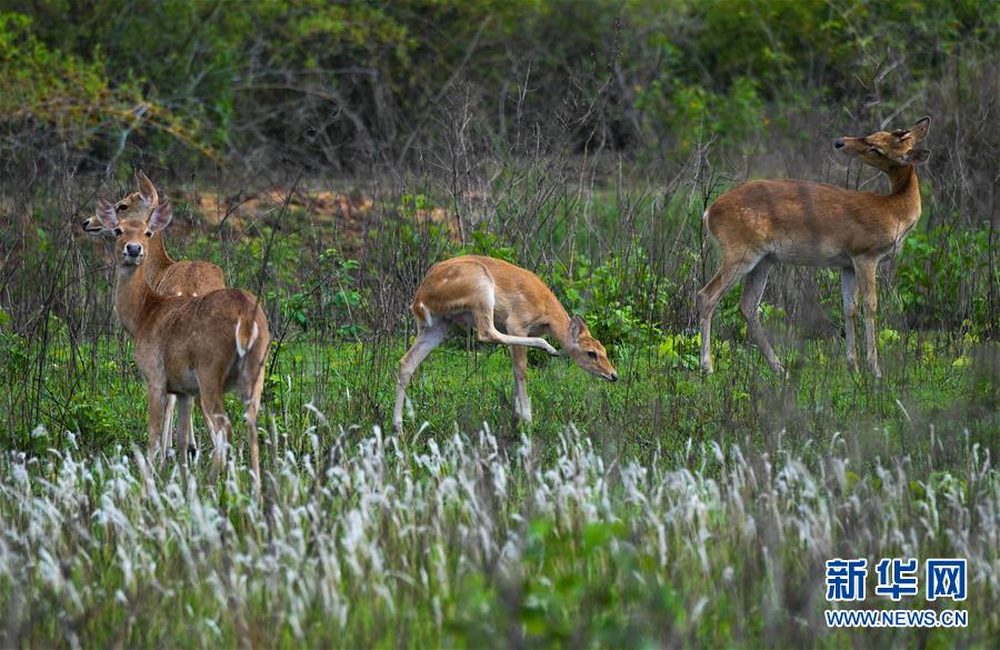 坡鹿在海南大田國(guó)家級(jí)自然保護(hù)區(qū)內(nèi)休息(2018年4月29日攝)。新華社記者 楊冠宇 攝