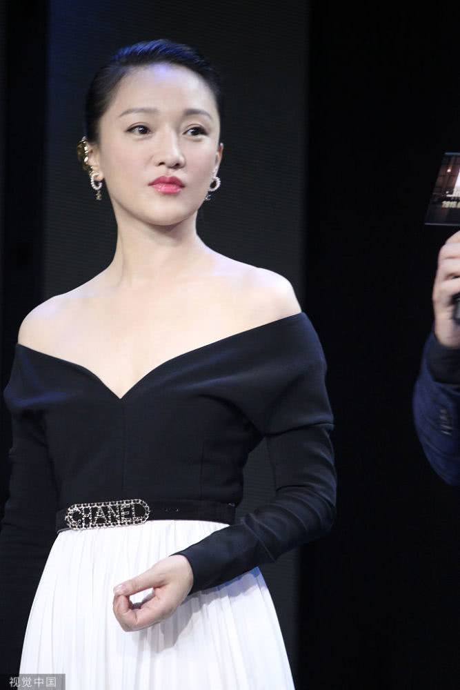 周迅一身黑白look。
