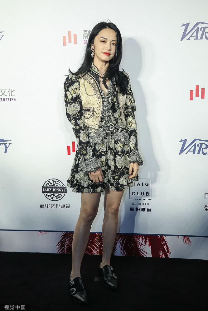 女演員姚晨亮相,穿黑白泡泡袖印花連衣裙,戴項(xiàng)鏈優(yōu)雅迷人
