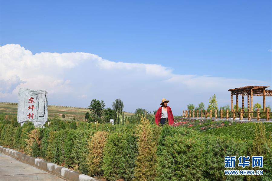 村民經(jīng)過東坪村新村的綠化帶(6月13日攝)。 新華社記者 楊晨光 攝