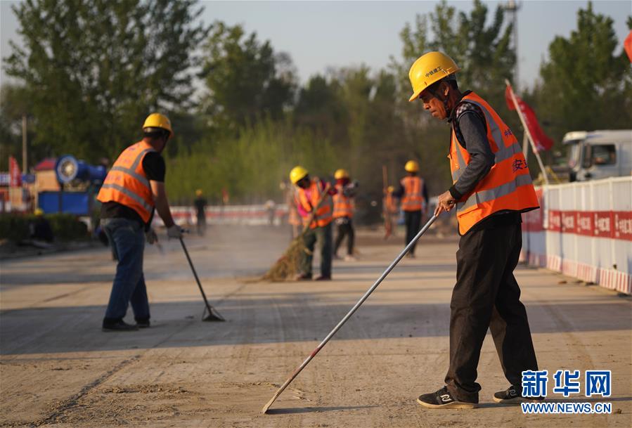 5月1日,中鐵建工的建設者在雄安高鐵站施工。 “五一”小長假期間,建設者仍然在雄安高鐵站的建設工地上忙碌。 新華社記者 邢廣利 攝