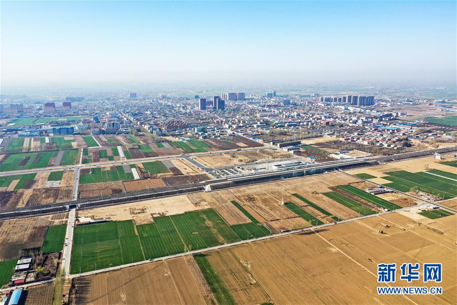 4月1日無(wú)人機(jī)拍攝的雄安新區(qū)白洋淀站。新華社記者王建華攝