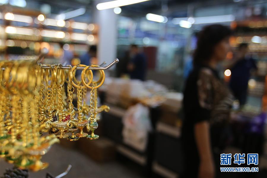 9月4日,在新疆塔城地區(qū)巴克圖口岸,顧客在絲路文化商品城內(nèi)選購商品。 新華社記者安希雅攝