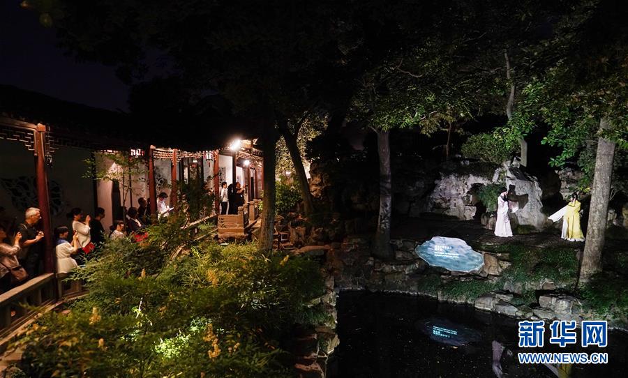 5月29日,觀眾在江蘇蘇州滄浪亭觀看新編昆曲《浮生六記》園林版。新華社記者李響攝