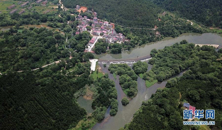 這是槎灘陂水利灌溉工程一景(5月29日無人機拍攝)。新華社記者彭昭之攝