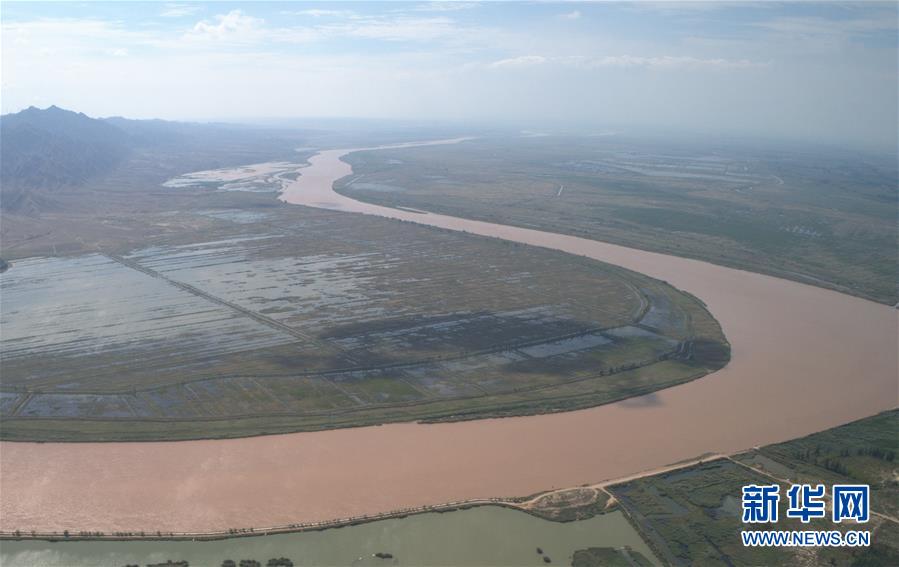 青銅峽市境內的黃河(9月3日無人機拍攝)。新華社記者劉詩平攝