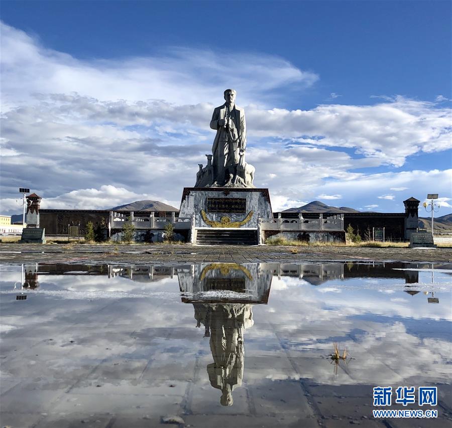 這是在青海省玉樹藏族自治州治多縣用手機拍攝的“環(huán)保衛(wèi)士”杰?!に髂线_(dá)杰的雕像(9月12日攝)。新華社記者 鄒樂 攝