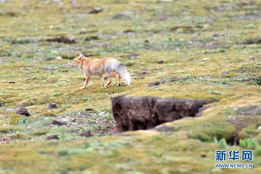 在青海省玉樹藏族自治州治多縣,一只藏狐雨后“漫步”在草場上(9月12日攝)。 新華社記者 孫瑞博 攝