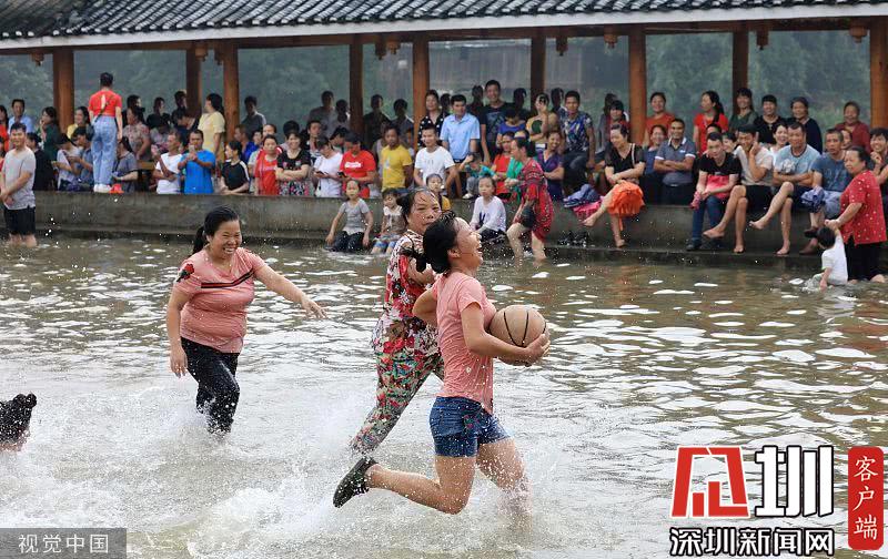 人們在水上籃球比賽中拼搶。