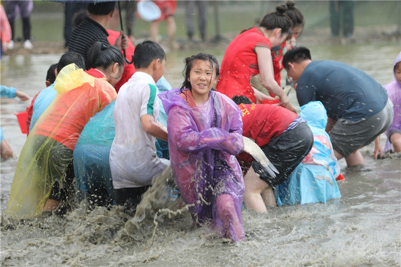 市民稻田抓魚 ,感受田園氣息。