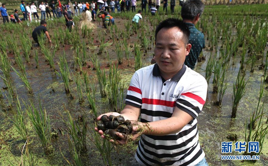 10月28日,在廣西融水苗族自治縣拱洞鄉(xiāng)龍令村,村民參加摸螺比賽。新華社記者 黃孝邦 攝
