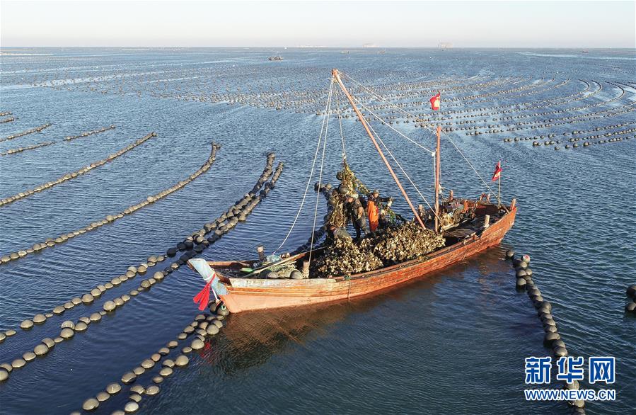 當(dāng)日,在遼寧省大連市長(zhǎng)??h廣鹿島海域,漁民忙碌地打撈牡蠣,呈現(xiàn)一片繁忙的豐收景象。近年來(lái),大連市持續(xù)加強(qiáng)海洋牧場(chǎng)建設(shè),目前已累計(jì)建設(shè)海洋牧場(chǎng)約36萬(wàn)公頃,投放各類魚礁約1578萬(wàn)平方米,建立國(guó)家級(jí)海洋牧場(chǎng)示范區(qū)14處。