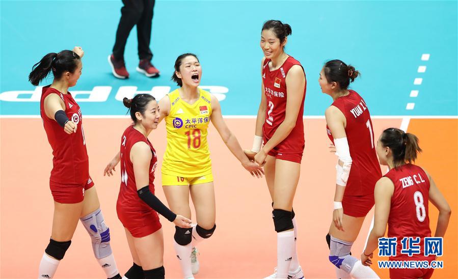 9月22日,中國隊(duì)球員在比賽中慶祝得分。當(dāng)日,在日本札幌舉行的2019年女排世界杯賽第二階段A組循環(huán)賽中,中國隊(duì)以3比2戰(zhàn)勝巴西隊(duì)。新華社記者杜瀟逸攝