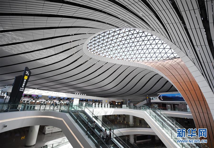 這是9月25日拍攝的北京大興國際機(jī)場航站樓內(nèi)部。新華社記者張晨霖?cái)z