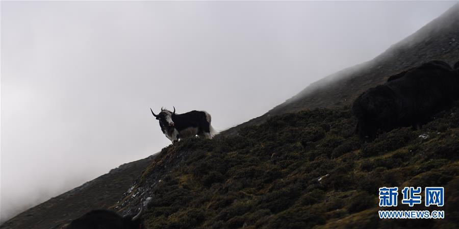 這是勒布溝山坡上的牦牛(9月25日攝)。