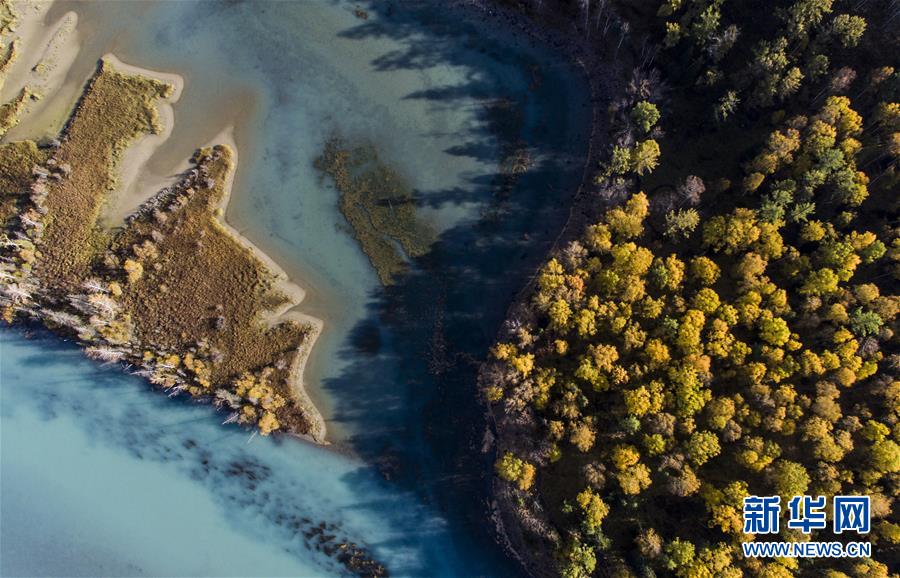 9月25日無人機拍攝的喀納斯景區(qū)風光。 新華社記者 王菲 攝