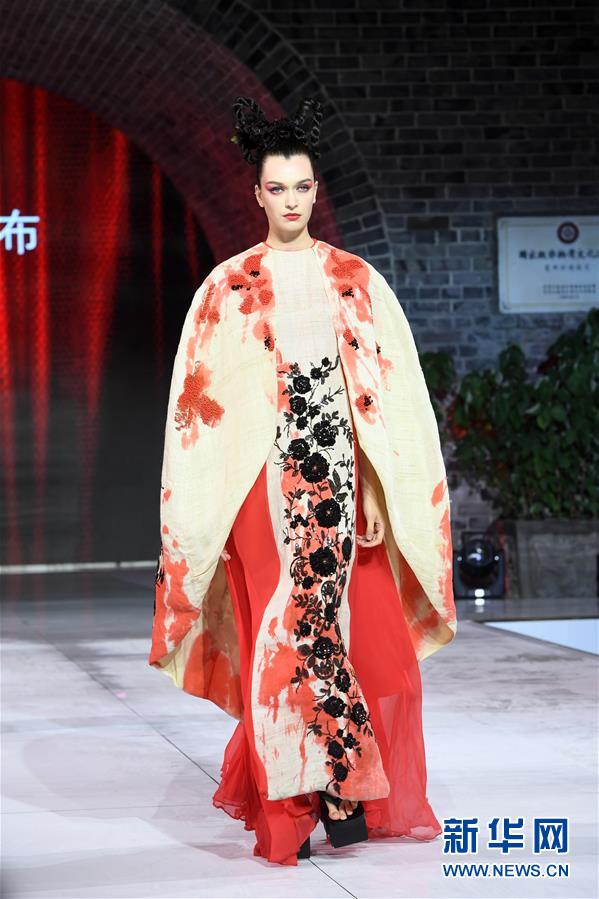 9月25日,模特在榮昌夏布·張義超非遺時尚大秀上展示時裝設(shè)計師張義超的時裝作品。