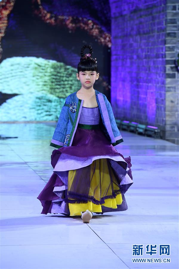 9月25日,小模特在榮昌夏布·張義超非遺時尚大秀上展示時裝設(shè)計師張義超的時裝作品。 新華社記者 唐奕 攝