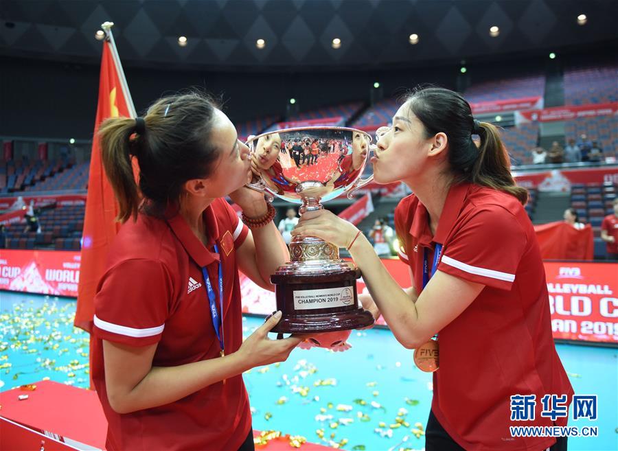 當日,2019年女排世界杯賽頒獎儀式在日本大阪舉行,中國隊在本屆比賽中以十一連勝的戰(zhàn)績奪得了冠軍。
