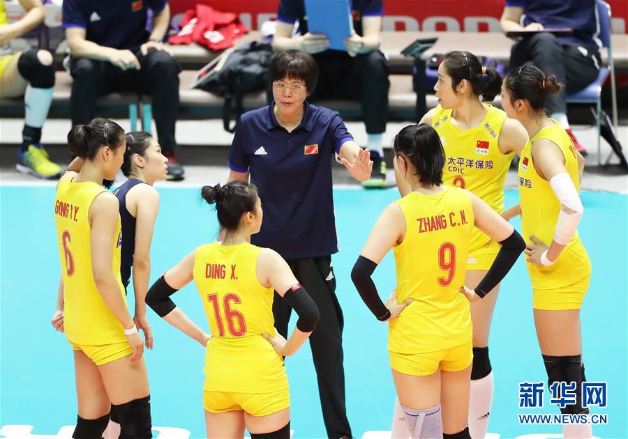 9月23日,中國(guó)隊(duì)主教練郎平(中)在比賽間隙指導(dǎo)球員。當(dāng)日,在日本札幌舉行的2019年女排世界杯賽第二階段A組循環(huán)賽中,中國(guó)隊(duì)以3比0戰(zhàn)勝美國(guó)隊(duì)。新華社記者杜瀟逸攝